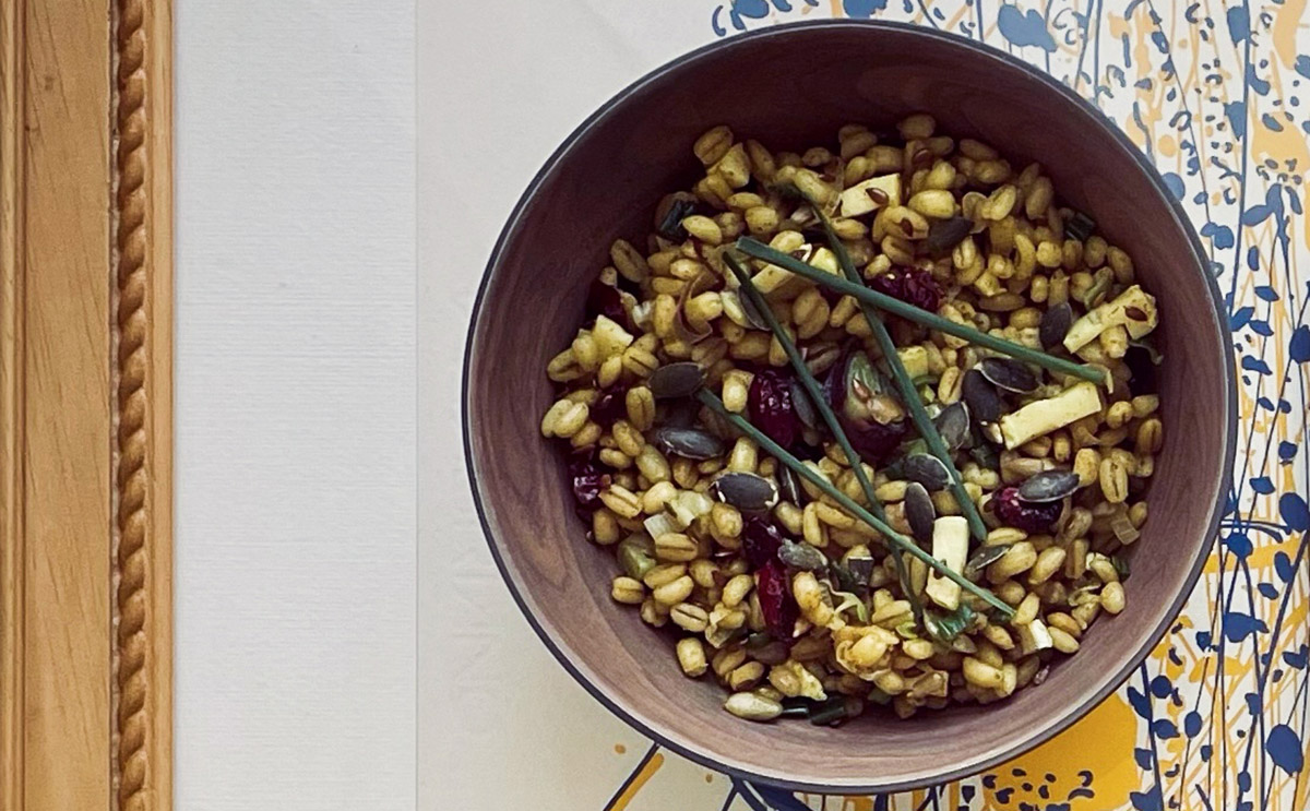 Orzo speziato con tomino e semi oleosi (piatto vegetariano)